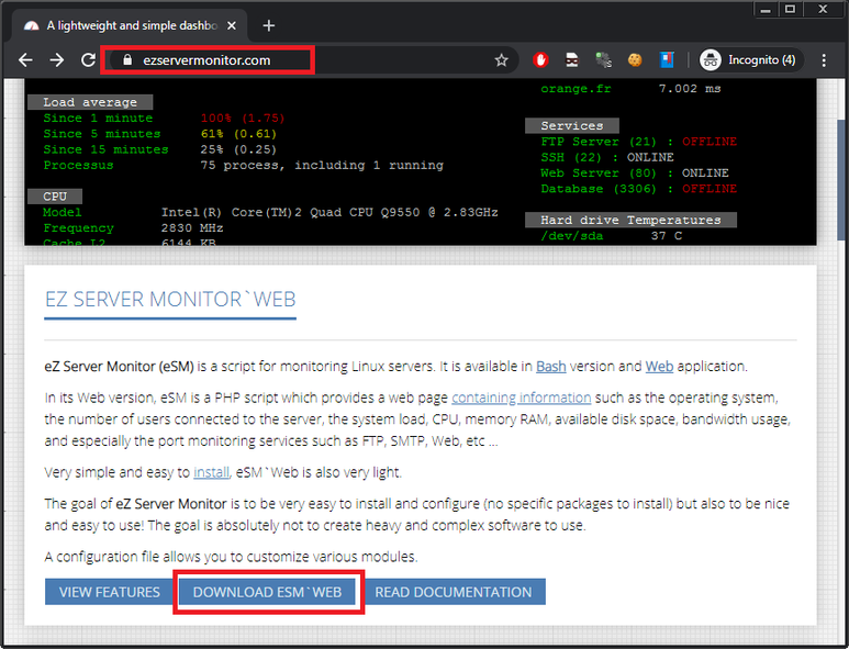 "ez Server Monitor"는 https://www.ezservermonitor.com/ 사이트에서 직접 다운로드 받을 수 있다.
