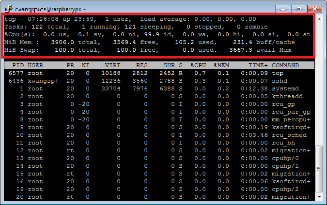 라즈베리파이를 사용하다 보면 디스크 용량을 얼마나 사용했는지? CPU나 메모리 사용율이 얼마나 되는지? 최근에 로그인한 사용자는 누군지 등등이 궁금하게 된다.