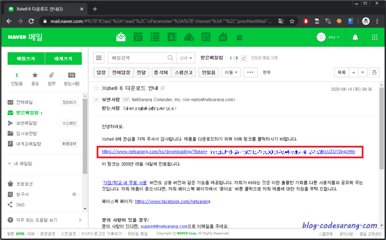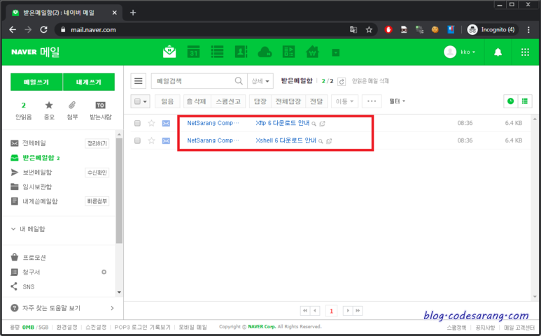 입력한 이메일을 로긴하여 넷사랑에서 수신한 메일을 확인해 보자.​