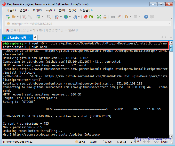 이제 OMV 설치 준비가 완료 되었다. 아래 명령어를 수행하면 github에서 OMV 설치 스크립를 다운로드 받아 자동으로 실행한다.