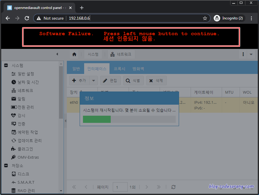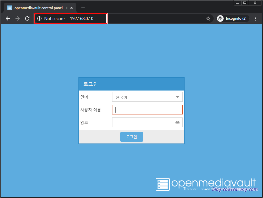 아래 그림처럼 나오면 일단을 OMV 5버전 설치가 완료된 것이다.
