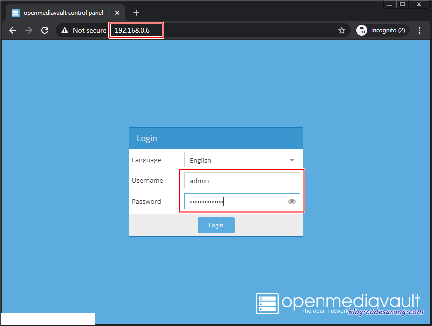 OMV 5의 최초 로그인 정보는 다음과 같다.
