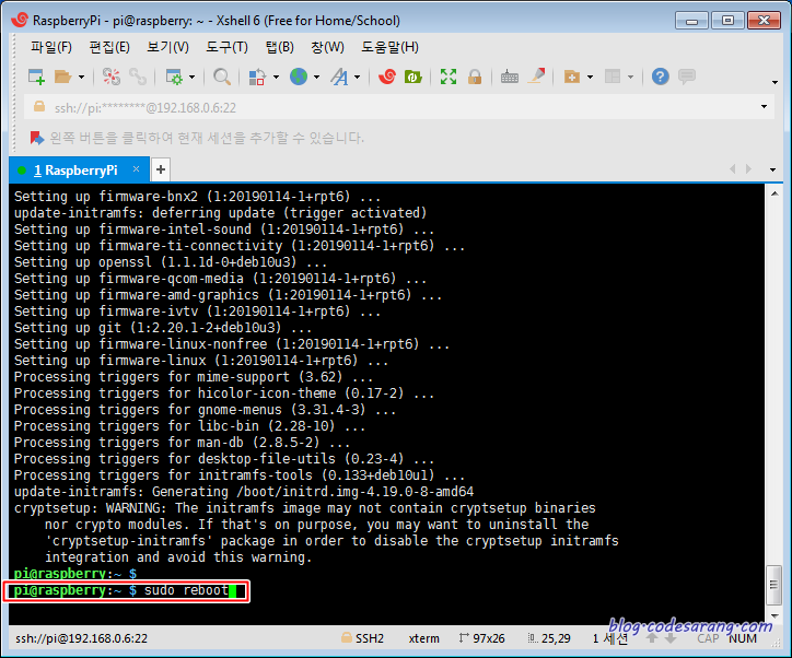 업그레이드가 완료되면 재부팅을 해주도록 한다.