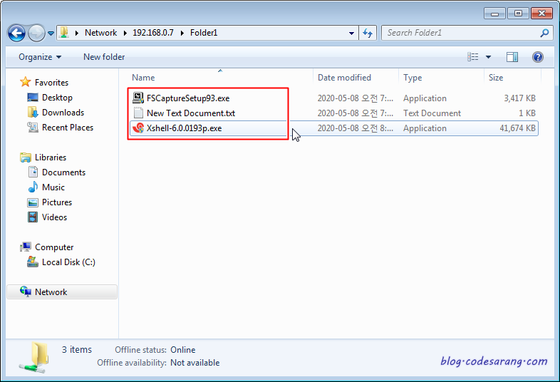 라즈베리파이의 USB HDD를 윈도우즈 PC에 연결할 경우, 아래처럼 새로 만든 공유폴더가 보인다.