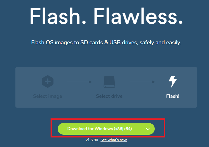 SD 카드에 운영체제 이미지를 기록하기 위해서는 Etcher라는 프로그램을 많이 사용한다. Etcher 프로그램은 여기서 다운받아 실행하면 된다.