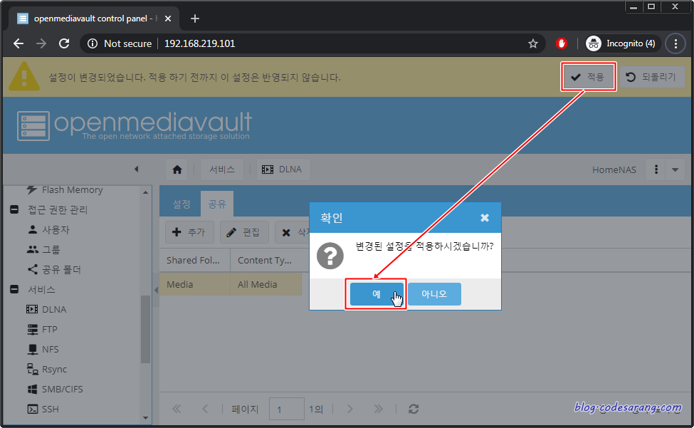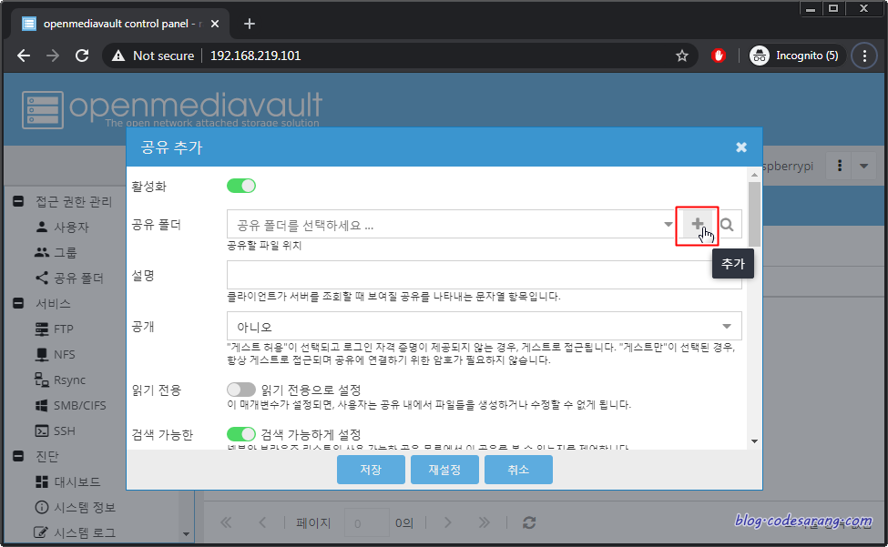 OMV에서 SMB 설정 방법에 대해 이미 언급한 바 있으나, 다시한번 간단히 설명하도록 하겠다.