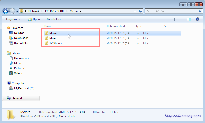 나의 경우 동영상 및 음악을 폴더별로 관리하기 위해 아래처럼 추가 폴더를 만들었다.(필수 아님)