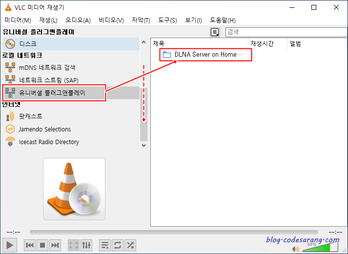 이제 윈도우PC의 VLC 미디어 재생기에서도 잘 접속되는지 테스트 해보도록 하겠다.