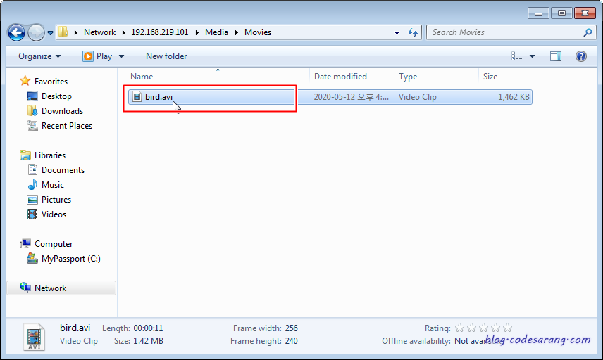 참고로, 아래처럼 공유 폴더에 직접 접속해 동영상 재생도 가능하다.