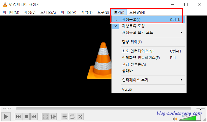 우선, "보기" 메뉴에 "재생목록"을 선택하도록 한다.