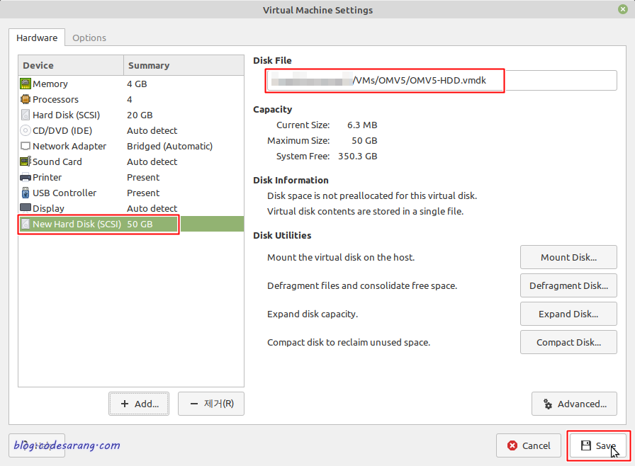 그리고 HDD 추가를 위해 "Add..." 버튼을 클릭한다.