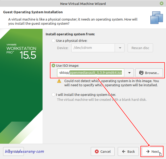 아까 다운로드 받은 ISO 파일을 선택한 후 "Next" 버튼을 클릭한다.