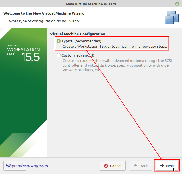 "New Virtual Machine Wizard"에서 "Typical"을 선택한 후 "Next" 버튼을 클릭한다.
