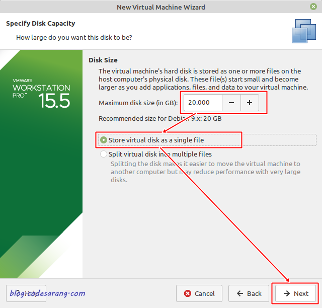 디스크 용량을 적절히 조절 해 주고 "Next"