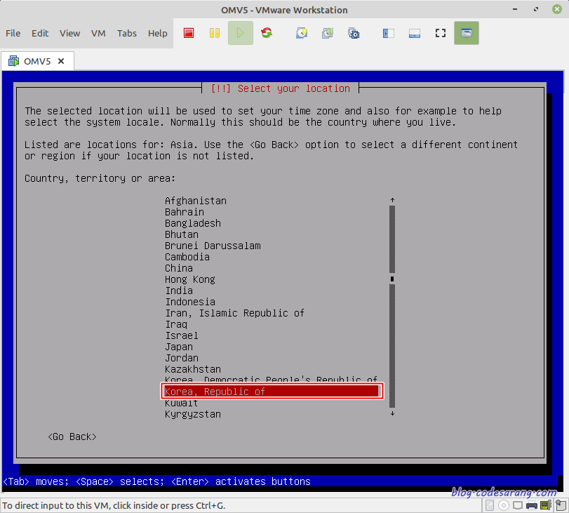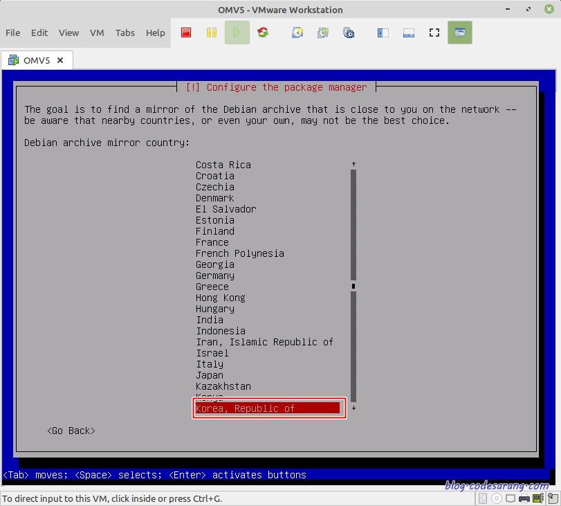 미러 사이트 국가에서 "Korea, republic of"를 선택한다.