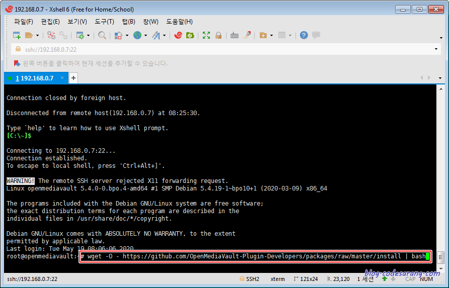 OMV에 root로 로그인한 후 위 스크립트를 복사&붙여넣기 해주면 설치가 시작된다.