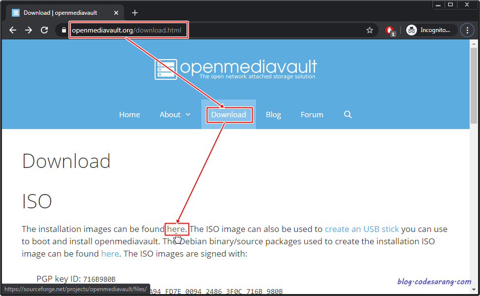 우선 OMV의 다운로드 페이지를 방문하면 아래처럼 ISO 이미지를 다운받을 수 있는 링크가 있다.