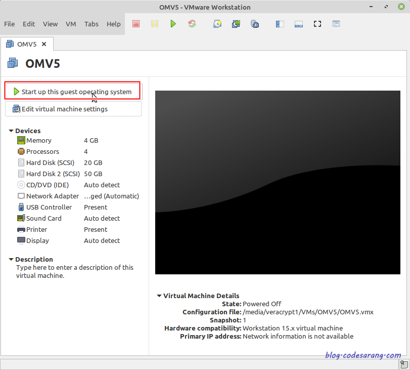 VMware에서 HDD 추가를 위해서는 우선 OMV 시스템을 종료한다.