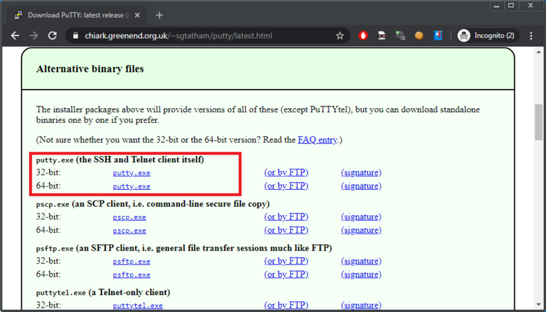SSH 접속을 위해서는 SSH 클라이언트 프로그램을 설치해야 한다. putty라는 프로그램이 SSH 접속 클라언트로 가장 많이 사용하되고 있다. 설치도 필요 없는 단독 실행형 프로그램으로, 여기에서 다운받을 수 있다.(32bit, 64bit 아무거나 다운받으면 된다)