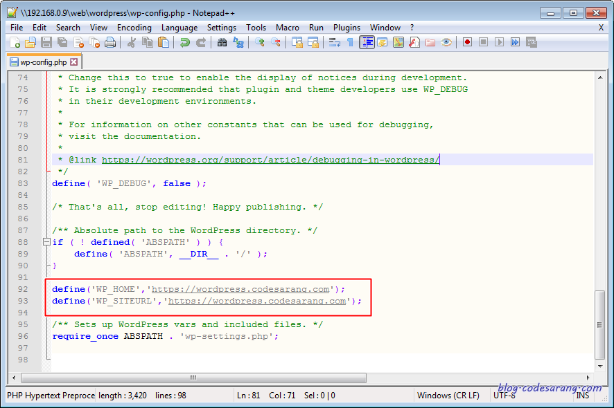 결국 이상태에서도 wp-config.php 파일을 위처럼 수정해 주어야 한다.
