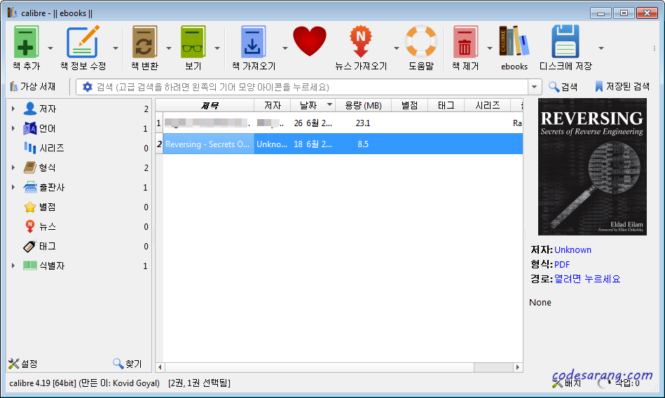 5. 윈도우용 캘리버를 이용한 전자책 관리