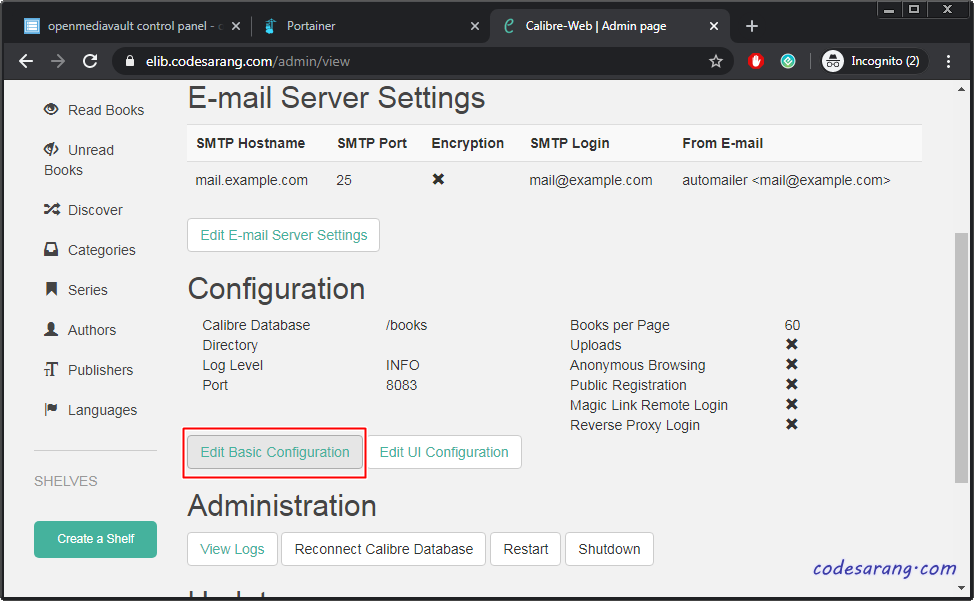 다시 Admin 메뉴로 들어가 "Edit Basic Configuration" 버튼을 클릭한다.