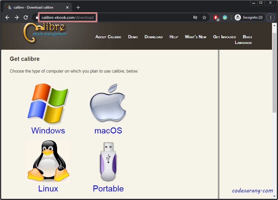 여기 사이트(https://calibre-ebook.com/download)에서 다운로드 받으면 된다.