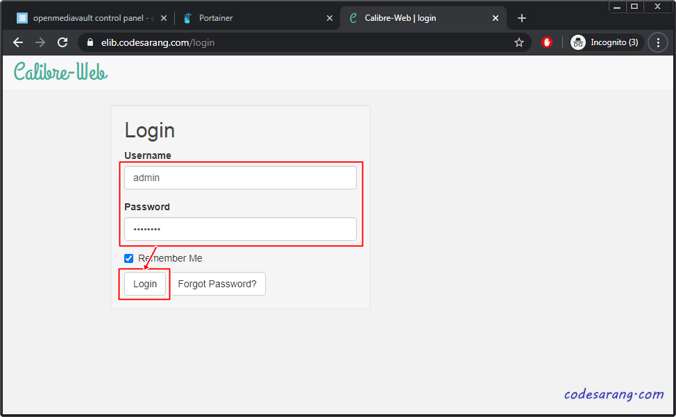 이제 캘리버에 로그인을 해보도록 한다. 관리자 초기 ID는 "admin"이며, 비밀번호는 "admin123"이다.