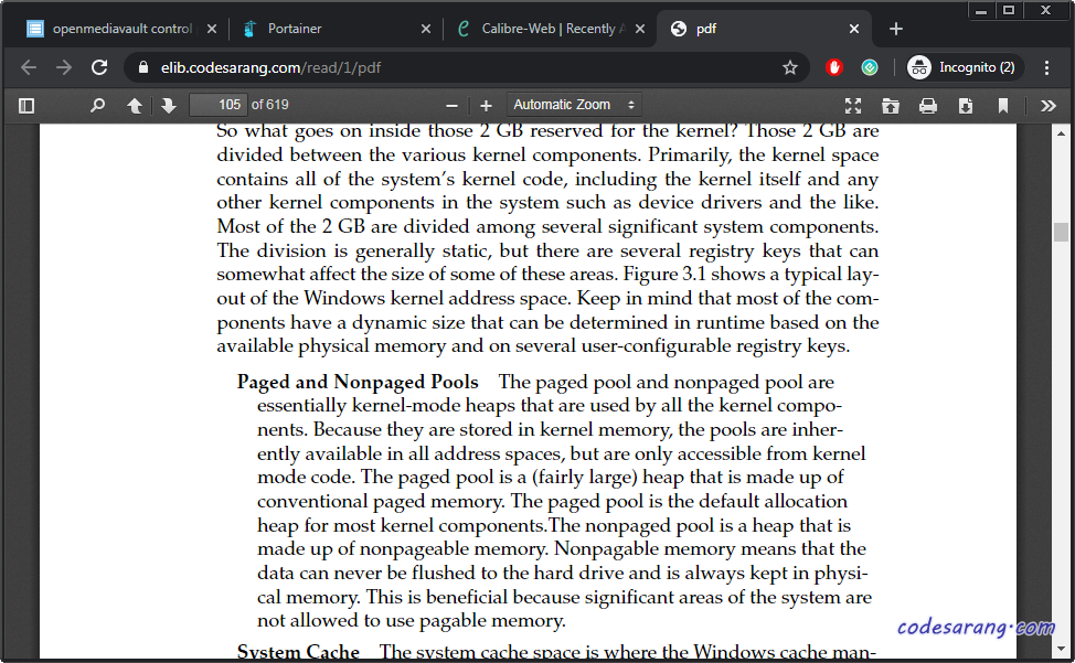 아래 화면은 브라우저에서 PDF 문서를 보는 화면이다. 캘리버에서 전자책을 읽을때 좋은 점은, 다음에 다시 읽을때 마지막으로 읽은 페이지로 자동으로 이동 한다는 것이다.