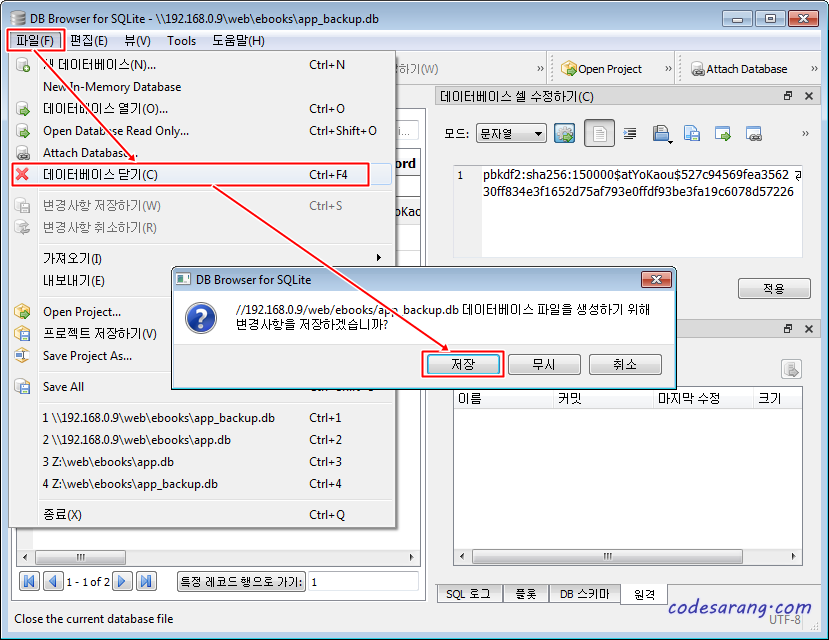 이제 app_backup.db 데이터베이스를 저장하고 종료한다.