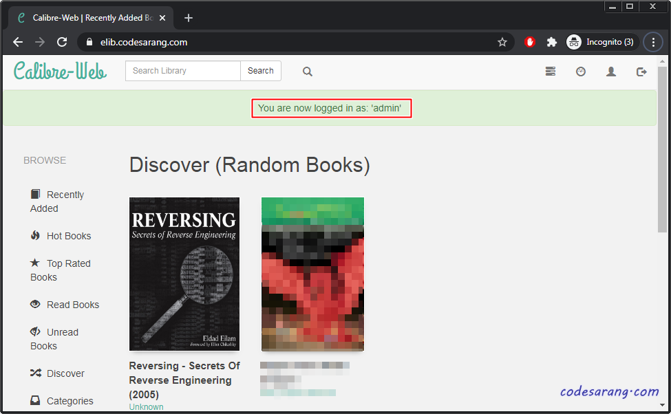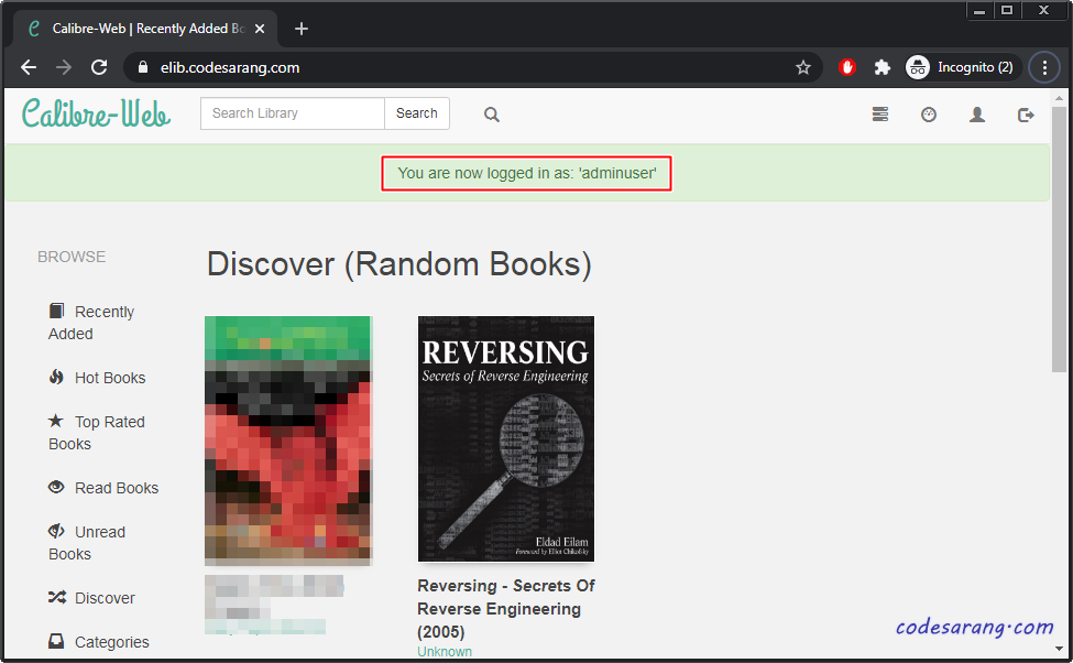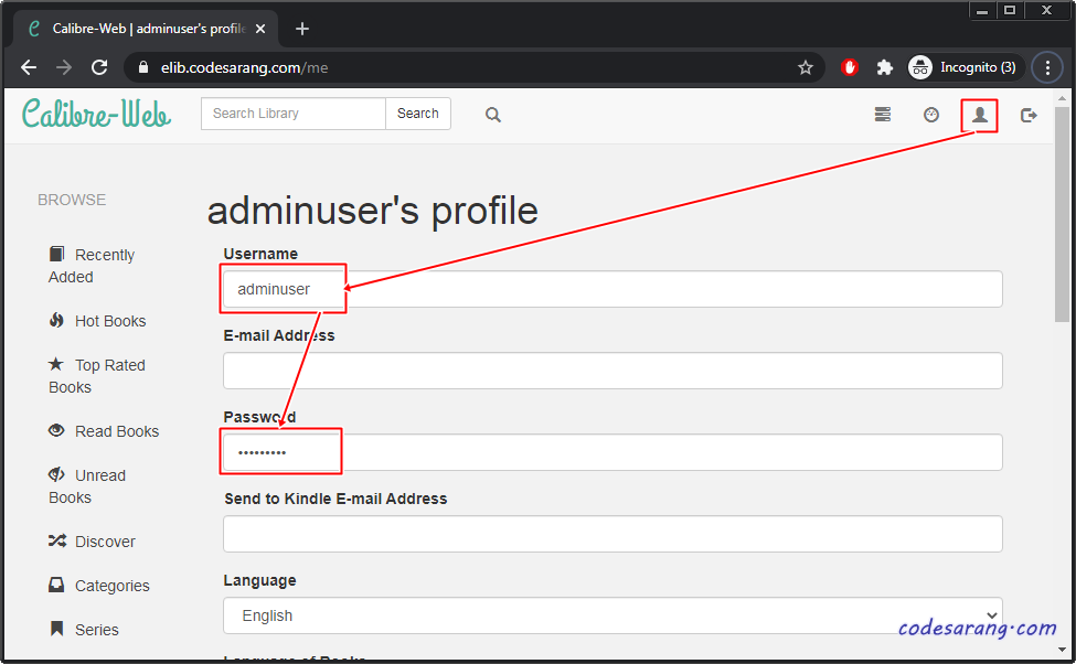 이제 캘리버 웹사이트에 다시 접속, 새로운 사용자로 로그인하면 로그인도 성공할 뿐만 아니라, 기존의 책장 및 북마크 정보도 모두 복구 가능하다.