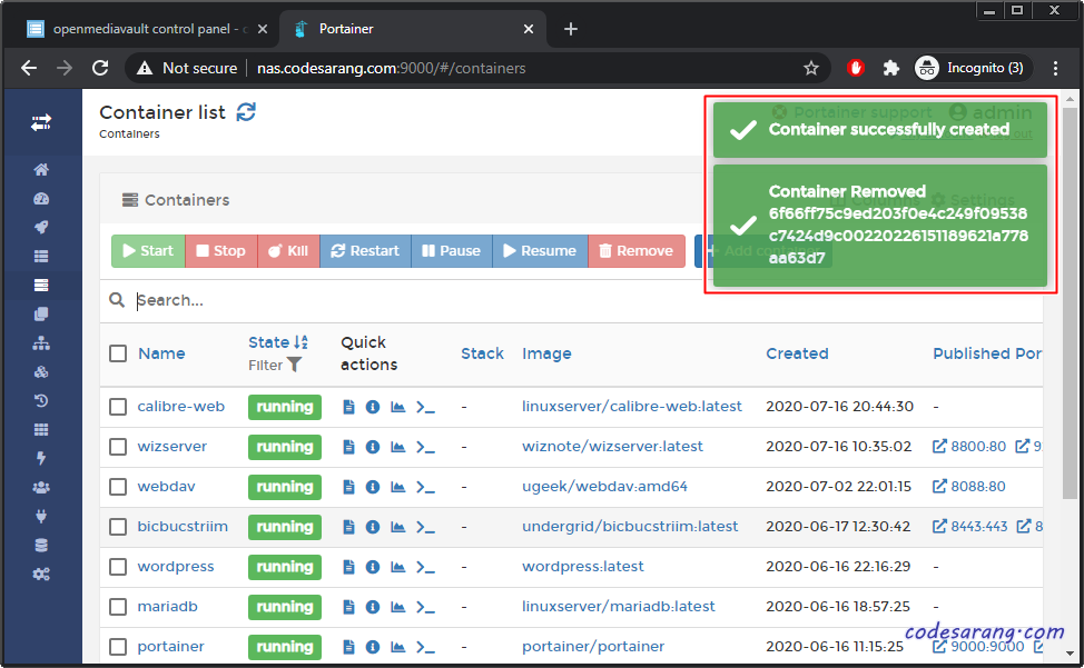 이제 컨테이너 재생성이 완료되었다.