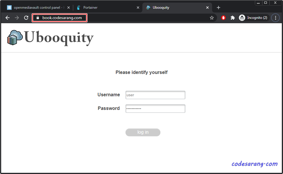 이제 http://nas.codesarang.com:2202/로 접속하면 ubooquity 접속이 가능하다. 위에서 추가한 사용자 ID 및 비밀번호로 로그인 하도록 한다.