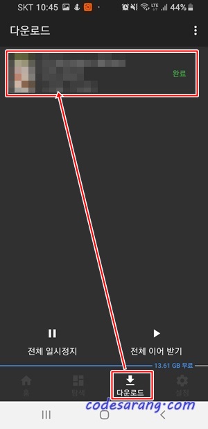 다운로드된 전자책은 "다운로드" 메뉴에서 확인 가능하며, 당연하겠지만 모바일 데이터 및 와이파이가 연결되어 있지 않아도 책 읽기가 가능하다.