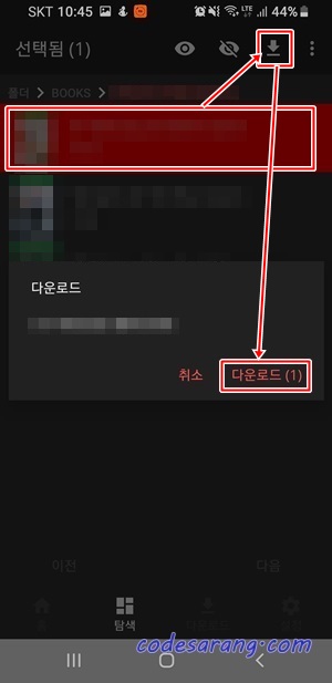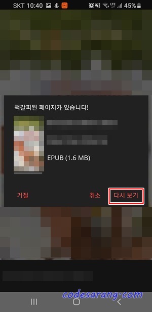 스마트폰 데이터 절약을 위해 전자책을 볼때 스트리밍 방식이 아닌 다운로드 받을 수 있는 방법도 제공한다.