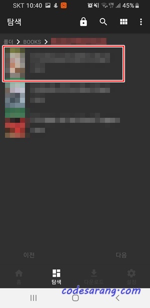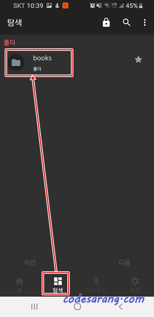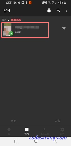 아래 그림처럼 전자책들이 저장되어 있는 폴더들을 볼 수 있다. 현재는 하나의 폴더만 존재하며, 해당 폴더를 클릭한다.