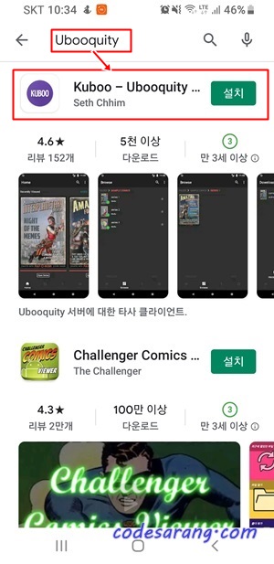 Kuboo를 선택하게 된 계기는 구글 플레이스토어에서 Ubooquity로 검색시 맨 위에 나와서이다. 일단 Kuboo를 설치하도록 한다.