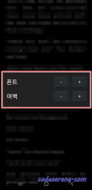 아래처럼 설정 메뉴에서 폰트크기 및 여백 설정도 가능하다.