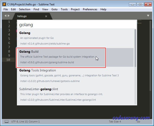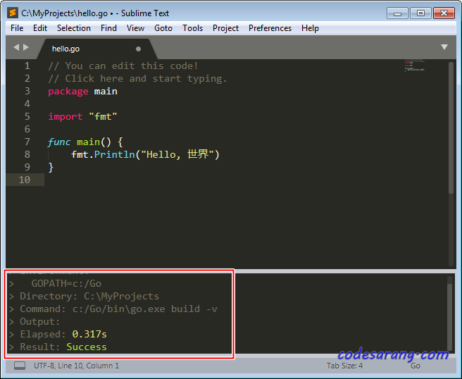 이제, Sublime Text에 Go 컴파일 옵션이 포함되었다.