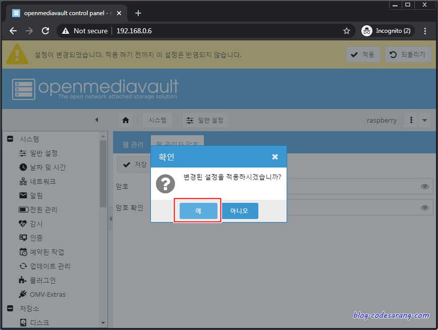 OMV 설치 이후 제일 처음 할 일은 로그아웃 설정 및 관리자 비밀번호 변경이다.