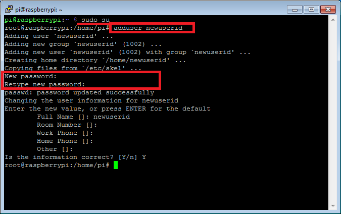 쉬운 방법으로는 pi 계정의 비밀번호만 단순히 변경해도 되겠지만, 관리를 위한 새로운 계정을 생성하는게 보안적 측면에서 훨씬 더 안전하다.