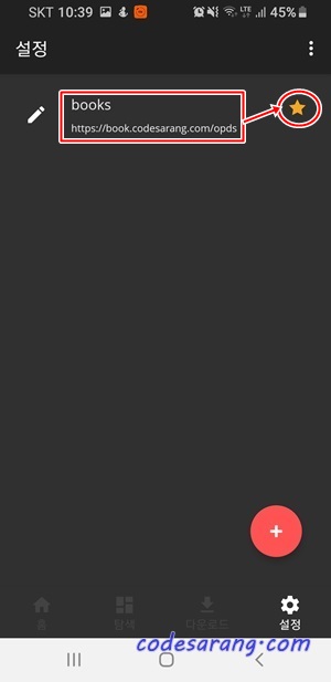만약 만화책을 읽고 싶다면 위에서 처럼 만화책 새로 서버를 추가하여야 하며, 나의 경우 "https://book.codesarang.com/opds-comics/" 주소가 만화책용 OPDS 주소이다.
